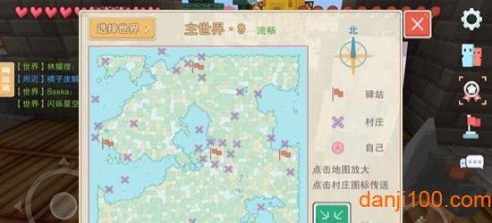 4、在进入的时候还可以选择具体方位,每个主世界的地图都不同,我们可以选择传送到驿站,或者传送到附近的玩家村庄。